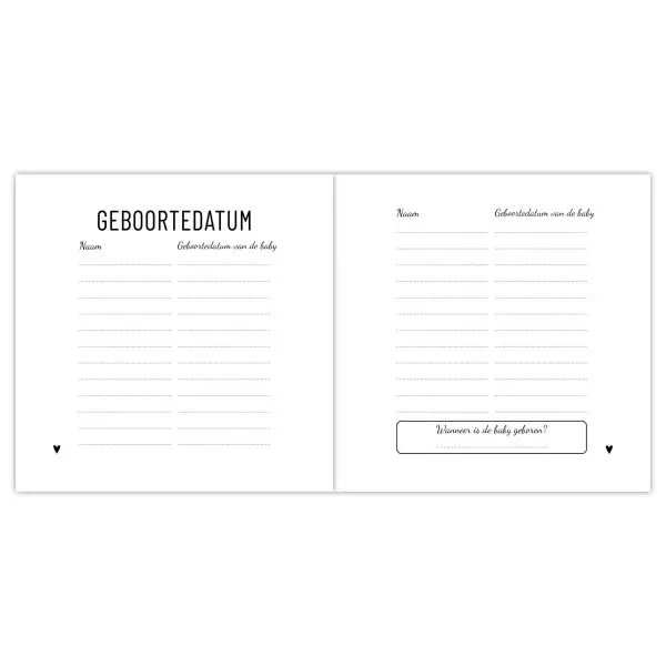 Het babyshowerboek is geschikt voor 24 gasten. Zijn er minder gasten op de babyshower? Dan kan je hem ook prima voor minder gebruiken.